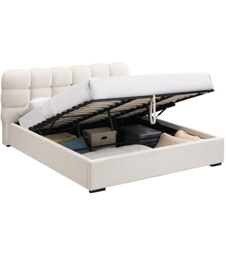 HOMIFAB Lit coffre adulte 180x200 cm avec sommier et tête de lit capitonnée en velours beige - Lola