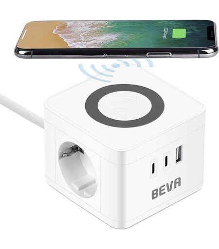 Multipr 6 in 1 En plus de la charge sans fil, la multipr ont également 2 ports de charge AC et 1 USB-A+2 USB-C, qui réal nt vraiment la combinaison de trois méthodes de charge. Chargement sans Fil 10 W Chargement sans Fil 10 W Le chargeur sans fil beva util un chipset haute performance avancé pour fournir une charge sans fil rapide jusqu'à 10 W, compatible avec Samsung note 10 + / note 10 / s9 + / note 9 / s8 / s8 + / S7 / s10 / s10 + / s10e; 7.5w compatible avec iPhone 11 / 12 / 13 / 14 / 15 Pro / pro / XS / XS / xr / X / 8 + / airpods, 5W compatible avec Google pixel 3 / 3xl / 4 / 4xl ou d'autres appareils compatibles Qi Design Compact et Portable 80 * 80 * 65mm, BEVA multipr cube avec USB et chargeur sans fil est suffisamment petite pour metter dans votre sac à dos, idéale pour la maison, le bureau ou les voyages. Protection multiple les dispositifs de protection contre la foudre et les surtensions util nt des composants de haute qualité. La multipr a les fonctions d'anti-surtension, d'anti-surintensité, d'anti-surchauffe et d'anti court-circuit pour assurer la sécurité des appareils électroménagers. Une porte de sécurité pour enfants est installée dans les pr s pour protéger vos enfants. Excellents matériaux Nos produits sont conçus avec des matériaux ignifuges et des fils de cuivre standard, résistants aux hautes températures et efficacement ignifuges. Il est léger mais durable, ce qui le rend idéal pour n'importe quel endroit de la maison ou du bureau. Si vous rencontrez des problèmes d'utilisation, vous pouvez nous contacter à tout moment et nous vous répondrons dans les 24 heures. ...