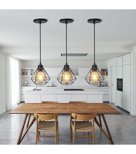 AXHUP Lot de 3 Diamant Lustre Suspension Industrielle 16CM Fer Abat-jour Cage en Métal Plafonnier Luminaire Noir pour Couloir Salon Escalier