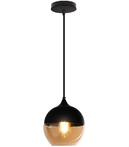 AXHUP Lustre Suspension en Verre Ambré E27 Noir Plafonnier Luminaire Salle à Manger Chambre Hôtel Noir - 20cm Ronde