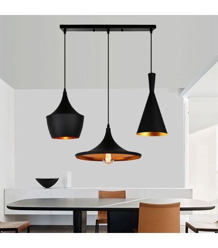 Lustre Suspension DESIGN avec son look vintage – rétro très tendance, ce Lustre Suspension moderne attirera tous les regards et illuminera la beauté de vos espaces de vie, comme le salon, la salle à manger, la cuisine, le couloir ou les chambres. ECLAIRAGE la lampe de plafond de design industriel est équipée d’une douille E27 pour ampoules LED ou halogènes d’une puissance de 60 Watt maximale. Nous recommandons des ampoules à filaments de type Edison afin de compléter l’aspect vintage. REGLABLE câble réglable, vous pouvez l’ajuster selons votre besoin, il peut etre comme un Lustre Suspension aussi quand vous réduire le longueur de câble MONTAGE – afin de vous faciliter l’installation, tout le matériel nécessaire pour le montage, vis et chevilles, est fourni. Le Lustre Suspension attire l’attention dans votre maison. • Design: Vintage, Industrielle • Matériau: Fer • Douille: E27 • nombre d’ampoule requise: 3x ampoule (non inclus dans notre paquet) • Ampoule: LED/Edison/à incandescence • ...
