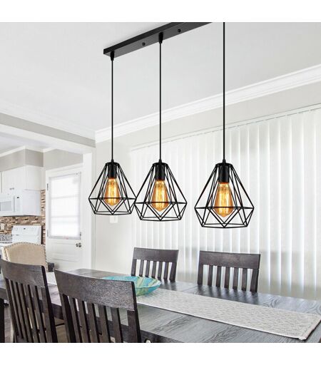 AXHUP Lustre Suspension Cage Forme Diamant Contemporain Plafonnier Lampe Noir