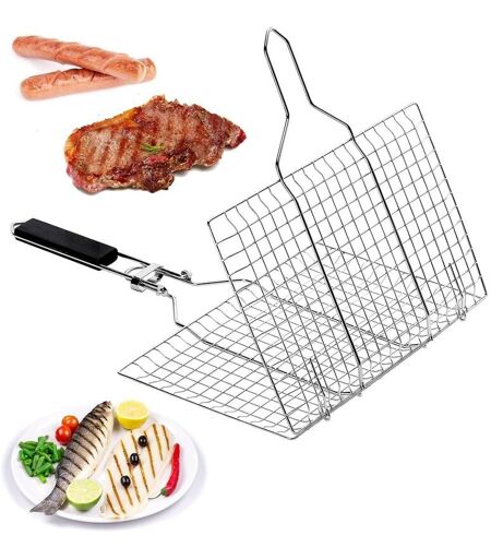 KINSI Panier Grille de barbecue, Panier à Poisson pour grillades, Avec poignée, acier inoxydable, portabilité