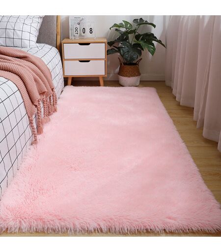 ENOWELIR Tapis rose shaggy 60x120 cm hyper doux antidérapant lavable machine pour chambre fille et salon décoration cosy tendance