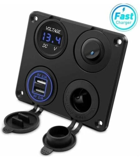 XVX Prise allume-cigare, double port USB, prise 4,2 A DC 12 V, interrupteur et affichage LED, voltmètre, prise de chargeur de voiture étanche pour