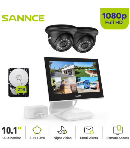 SANNCE 4CH Kits de Vidéosurveillance 10.1"Écran 21080P Caméra HD IR Vision Nocturne Étanche Accès à Distance Sécurité Surveillance Système