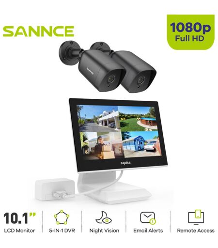 SANNCE 4CH Kits de Vidéosurveillance 10.1''Moniteur lcd 1080P 2 Caméra Extérieure/Intérieure ir Vision Nocturne Accès à Distance Sécurité Surveillance