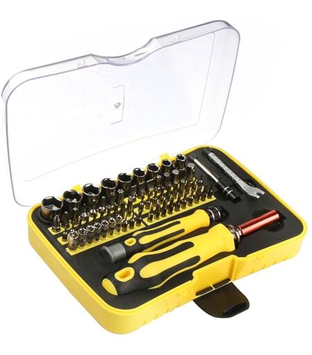 Le jeu de tournevis de précision : fabriqué en acier au chrome vanadium de haute qualité, dur et durable ; Conçu pour les téléphones, ordinateurs portables, consoles de jeux et autres petits appareils. Le kit de tournevis magnétique 70 en 1 : comprend 66 embouts spéciaux, une tige d'extension, un arbre flexible et un adaptateur de perceuse pour répondre à tous vos besoins quotidiens. Boîte pratique et utile : design compact pour un transport et un stockage faciles, il est facile de trouver n'importe quelle tête de tournevis que vous pouvez imaginer. Conception magnétique : la rallonge de tige a une fonction magnétique, ce qui rend les embouts de tournevis beaucoup plus faciles à utiliser. Sélectionnez simplement l'embout que vous voulez et placez-le dans le trou de la poignée et l'embout sera bien aspiré grâce au magnétisme. Avec boîte de rangement professionnelle : les kits d'outils de réparation sont équipés d'une boîte de rangement en PP résistant aux chocs. L'espace de stockage ...