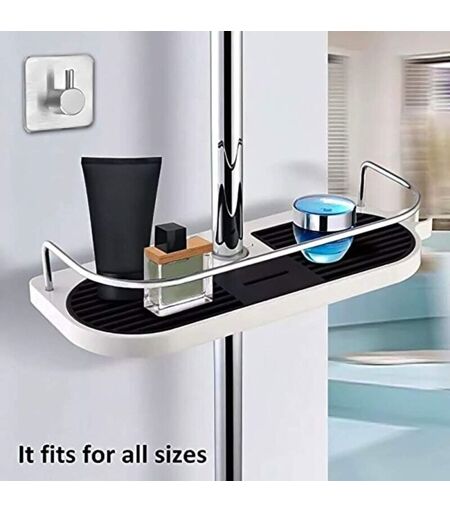 SOEKAVIA Tagère de Douche Télescopique Tige Réglable Organisateur de Salle de Bain Porte-Savon Multifonction, Crochet pour Serviette Inclus (sans Tige de