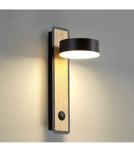 SOEKAVIA Applique murale led appliques murales éclairage intérieur applique murale en bois pour chambre salon bureau couloir, orientable 350° (noir) - rw