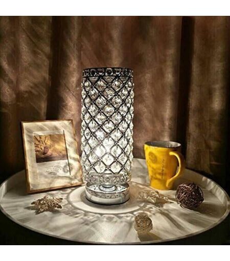 SOEKAVIA Lampe en cristal, lampe de chevet abat-jour, lampe de table en argent cristal de mode créative, pour chambre d'hôtel salon étagère commode (sans