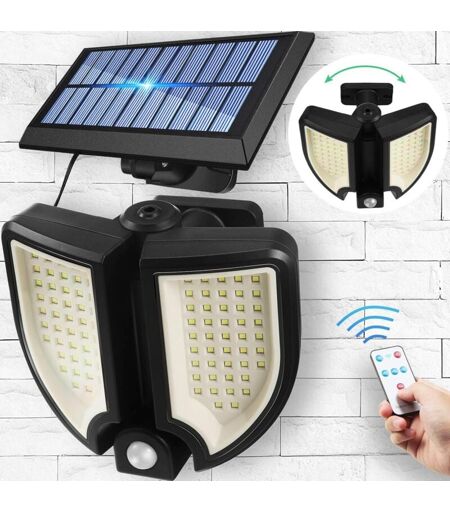 SOEKAVIA Lampes solaires d'extérieur avec télécommande à panneau solaire 90 led rond 3D capteur d'induction réglable applique murale étanche facile à