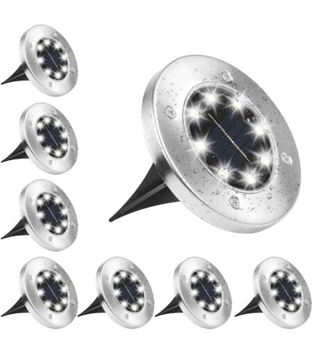 SOEKAVIA Lot de 8 lampes solaires d'extérieur blanc froid 6000 k étanches IP65 encastrables solaires pour allée, jardin, terrasse, cour, pelouse - rw