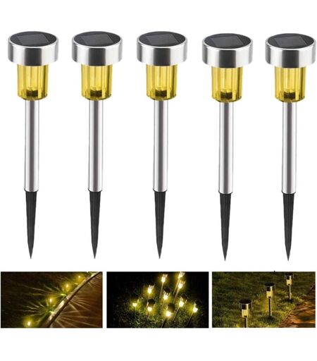 SOEKAVIA Lampe solaire de jardin à 5 led, éclairage de chemin à économie d'énergie en acier inoxydable Lampe solaire étanche pour pelouse de jardin extérieur
