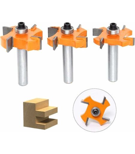 AIDUCHO 3Pcs Fraise à rainurer et languette, 4 boules de lame 8 mm Shank T - Fraise en forme de bois, Outils de travail du bois pour portes, tables,