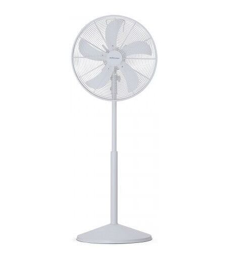 5 pales métalliques 3 vitesses avec système d'oscillation Hauteur réglable jusqu'à 130 cm Inclinaison réglable Débit d'air:58.85 m³/min Finition:Blanc Hauteur:1350 mm Longueur:450 mm Niveau sonore:64 dB(A) Nombre de vitesses:3 Poids:6.4 kg Profondeur:405 mm Puissance:50 W Tension:220-240 V ...