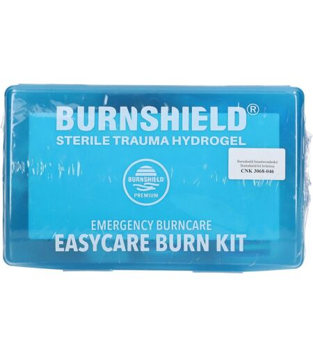Une trousse pratique bleue avec des produits Burnshield ® à utiliser lors de vos déplacements, à la maison, au camping etc.Le contenu consiste en: · 2 compresses Burnshield® de 10x10 cm · 1 compresse Burnshield® de 20 x 20 cm · 3 sachets(blots) Burnshield® de 3,5 ml · 3 sparadraps plastifiés · 1 paire de gants · 2 rouleaux de bandage élastique de 5 cm · 1 rouleau de sparadrap Micropore · 1 paire de ciseauxBénéficesBurnshield® est une méthode de refroidissement sûre, efficace et de qualité supérieure pour les brûlures.Conseils d'utilisationLire attentivement le mode d'emploi.IndicationsTraitement des brûluresConditionnement1 pièce ...