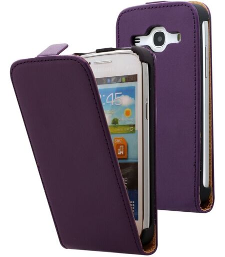 Pochette Etui Vertical Housse A Rabat Coque A Clapet En Cuir Pu Polyuréthane Style Cuir Véritable Violet Pour Samsung Galaxy Core Plus