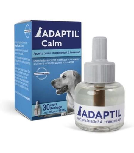 ADAPTIL Recharge antistress 48 ml 30 jours ADAPTIL pour chien et chiot est un antistress à laction rapide, prolongée et naturelle Son efficacité permet à votre chien de surmonter des situations stressantes répétées ou durables : socialisation et apprentissages, peur des bruits, orages, klaxons, etc. ...