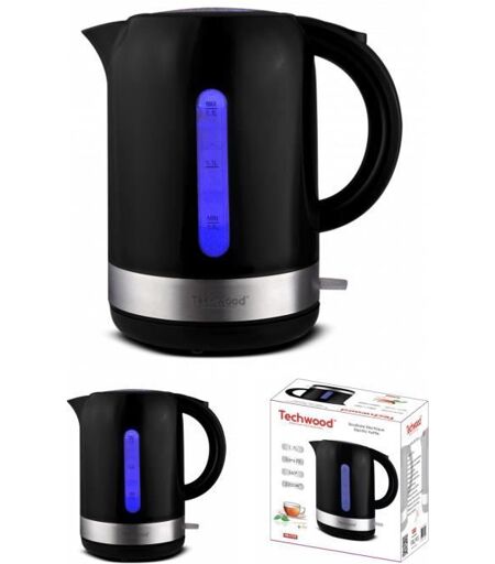Techwood Bouilloire Electrique Noire 1,7L 2200W Sans Fil Socle 360° avec connexion électrique