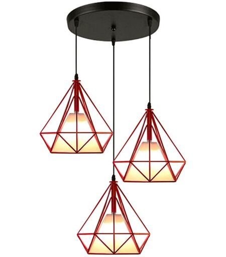 AXHUP 3 Lampes Suspension Vintage 25cm Lustre Suspension Fer Abat-jour en Forme Diamant Luminaire Salle à Manger Chambre Salon Rouge