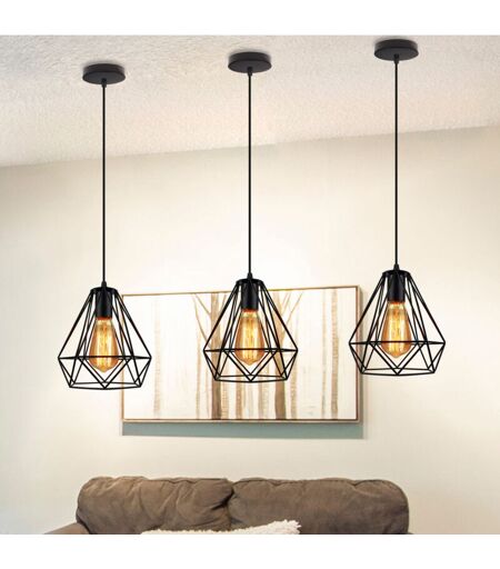 AXHUP Retro Lustre Suspension Industrielle E27 Plafonnier Lampe Abat-jour Forme Diamant Luminaire pour Salon Chambre Couloir Noir - 3PCS