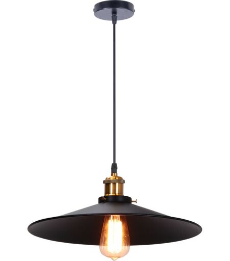 AXHUP Rétro Lustre Suspension Industrielle 36cm Plaofnnier Fer Abat-jour en Métal Noir