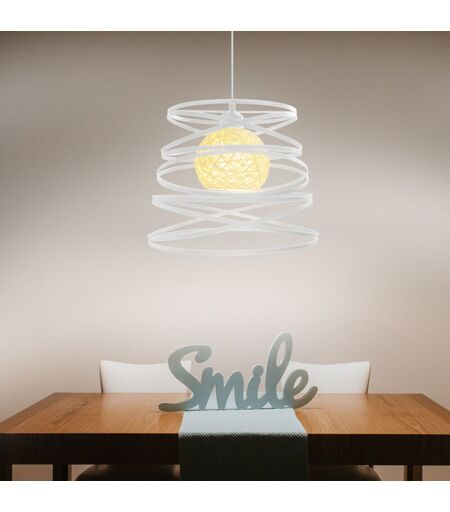 AXHUP Suspension Luminaire Fer Abat-jour Forme de Ressort 30cm Plafonnier Lustre E27 40W Blanc
