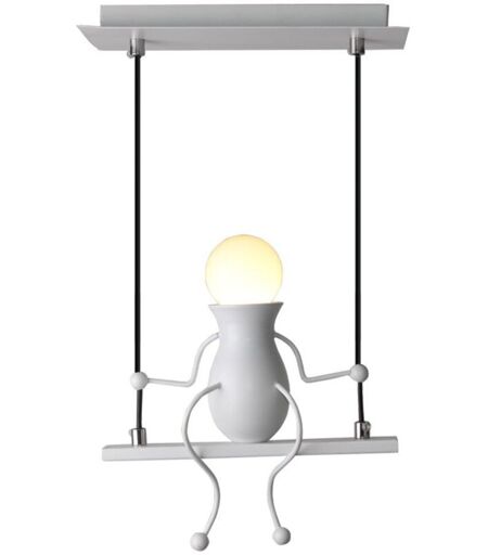 AXHUP Lustre Suspension en Métal Style Humanïde E27 Plafonnier Créatif Moderne Lampe de Plafond pour Enfants Chambre Couloir Salon Blanc