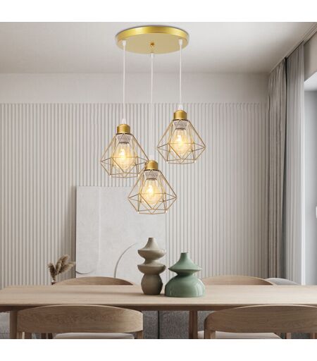 AXHUP Rétro Vintage Suspension Lustre Industrielle Cage en Métal Fer Luminaire en Barre 3 Lumières Doré