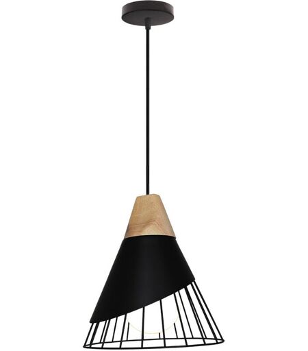 Axhup - Industriel Lustre Suspension Créatif Abat-jour Ø25cm en Forme Badminton en Métal et Bois Plafonnier Lampe E27 pour Chambre Salon Cuisine Noir