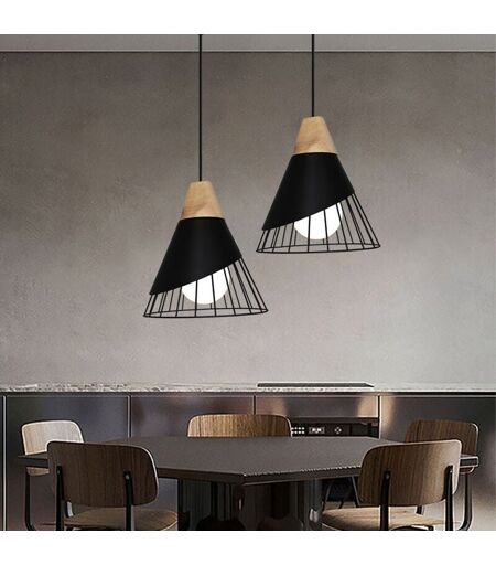 AXHUP Lot de 2 Industriel Lustre Suspension Créatif Abat-jour Ø25cm en Forme Badminton en Métal et Bois Plafonnier Lampe E27 pour Chambre Salon Cuisine Noir