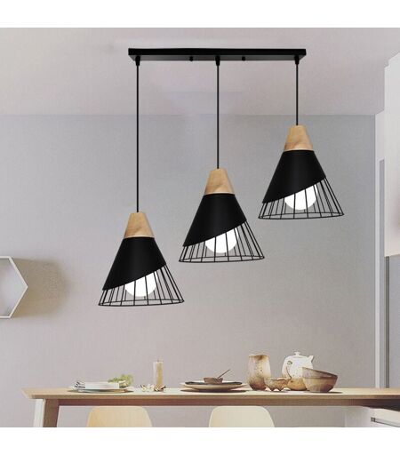 【Design】 - Vintage, Rétro, Industrielle, délicat..... 【Dimension】 - diamètre d'abat-jour: 25 x 30cm; Longueur de barre: 50cm 【Câble】 - Câble de 100 cm, longueur Ajustable, Luminaire DIY 【Couleur】 - Tout Noir et bois naturel 【Spécification】 - Tension : AC110-240 V; Puissance : 60 W maximum 【Ampoule】 - Douille E27; Ampoules applicables : ampoules Edison/ampoules LED/lampes à économie d'énergie/lampes halogènes; ampoule non inclus 【Application】 - Convient aux cafés, bars, clubs, salons, chambres, cuisines, restaurants, bureaux/bureaux à domicile, porches, buanderies, halls, porches, garages et terrasses 【emballage】 - 3x abat-jour; 3x câble de 100cm avec douille E27; 1x disque de plafond; 1x pièces d'installation(ampoule non inclus) 【Installation Facile】 - Lampe est en métal et bois. matériaux rend la lampe durable.Facile à assembler ...