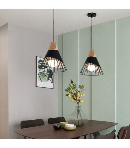 Axhup - 2 Pcs Lustre Suspension Créatif Moderne Abat-jour 25cm en Forme Badminton en Métal et Bois E27 Plafonnier pour Couloir Porche Salon Noir ...