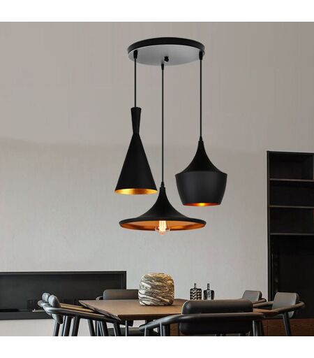 Lustre Suspension DESIGN avec son look vintage – rétro très tendance, ce Lustre Suspension moderne attirera tous les regards et illuminera la beauté de vos espaces de vie, comme le salon, la salle à manger, la cuisine, le couloir ou les chambres. ECLAIRAGE la lampe de plafond de design industriel est équipée d’une douille E27 pour ampoules LED ou halogènes d’une puissance de 60 Watt maximale. Nous recommandons des ampoules à filaments de type Edison afin de compléter l’aspect vintage. REGLABLE câble réglable, vous pouvez l’ajuster selons votre besoin, il peut etre comme un Lustre Suspension aussi quand vous réduire le longueur de câble MONTAGE – afin de vous faciliter l’installation, tout le matériel nécessaire pour le montage, vis et chevilles, est fourni. Le Lustre Suspension attire l’attention dans votre maison. • Design: Vintage, Industrielle • Matériau: Fer • Douille: E27 • nombre d’ampoule requise: 3x ampoule (non inclus dans notre paquet) • Ampoule: LED/Edison/à incandescence • ...