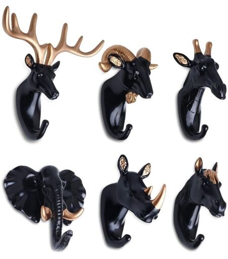 SNQ 6 Pièces Crochets Patères Porte Manteau Mural Tête d'Animal Cerf Éléphant Chèvre Crochets Decoratif Murale Créatif en Résine Rétro Vintage Crochet de