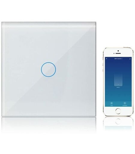 SNQ Interrupteur wifi Connecté Alexa Google Assistant Smart Life Compatible, Mural Interrupteur Tactile 1 Gang 1 Voies Blanc Panneau en Verre Trempé