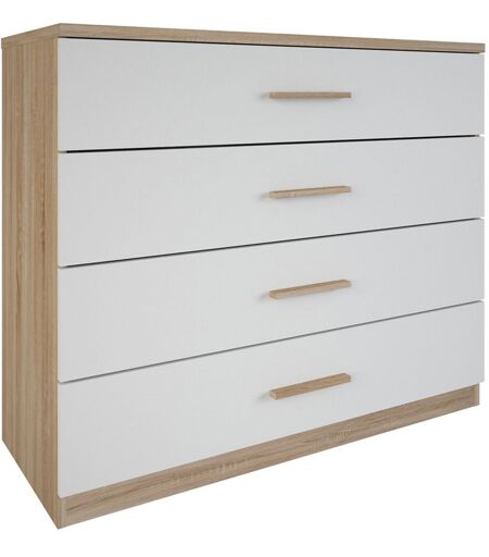 Commode avec 4 tiroirs "SELENA" chene brossé / blanc, elle apportera une touche de déco à votre intérieur. Dimensions : 100 x 84,7 x 41,6 cm. Coloris : chene brossé / blanc ...