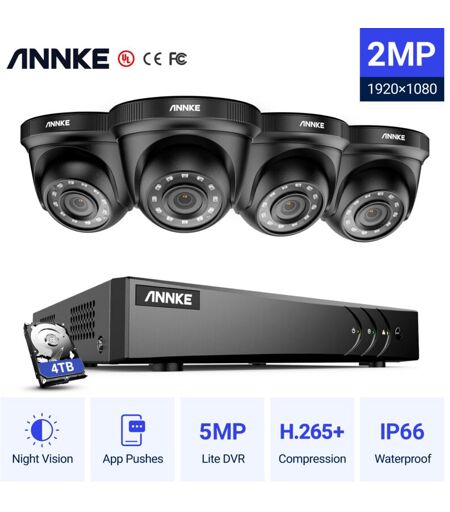 ANNKE Kit Caméra de Surveillance 5MP DVR 41080P Smart IR Vision Nocturne Sécurité CCTV Vidéosurveillance Caméra Système - 4TB HDD