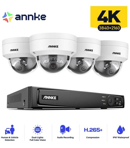 ANNKE Kit de Vidéosurveillance Exterieure 8CH nvr 4×8MP Caméras Intelligent Double Lumière Alertes Mouvement Accès Distance IP67 Sécurité Caméra