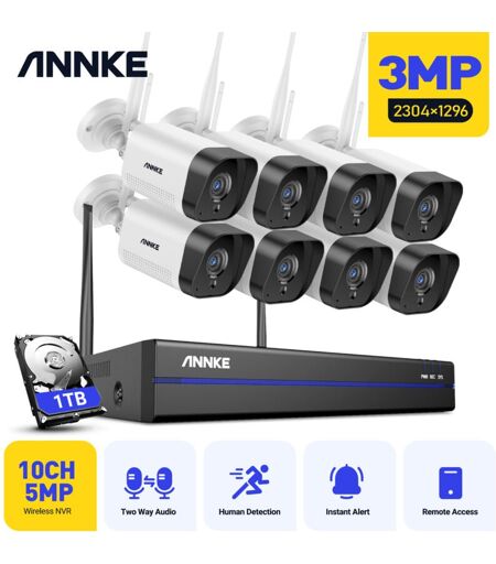 Annke - 3MP kit de vidéosurveillance sans fil vision nocturne détection mouvement wifi 8 caméras 1 To