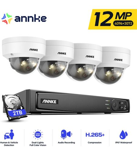 ANNKE 12MP PoE Kit de Vidéosurveillance Extérieur 8CH nvr Couleur Vision Nocturne Sécurité Double Lumière Intelligente Caméra Caméra de Surveillance