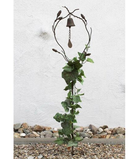 Porte-greffon avec cloche. Magnifique décoration de jardin. Forgé en métal et richement décoré. Couleur marron antique. Complètement apprêté avec une peinture antirouille et peint avec des peintures de haute qualité. Dimensions: hauteur environ 130 cm, largeur 28 cm. ...