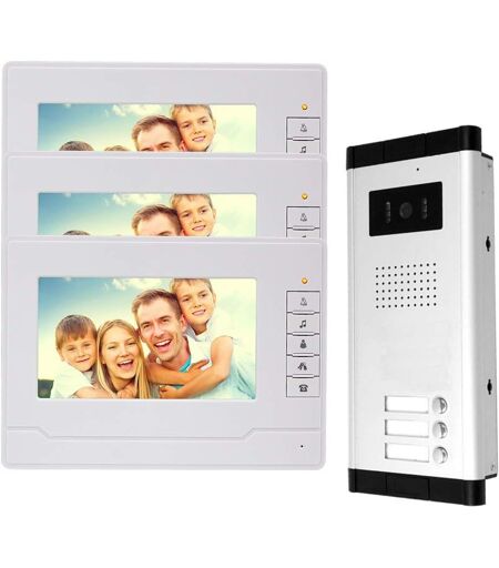 Outdoor Système D'interphone Vidéo 3 Moniteurs Vidéo Sonnette Vidéo Avec Caméra Ir Porte De Vision Nocturne480p Pour La Maison 3 Appartements