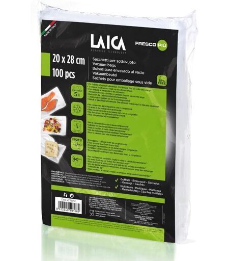 Laica Vt35012 - Pack De 100 Sachets Pour Machine À Emballer Sous Vide,20X28Cm