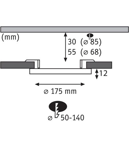 Paulmann 79963 Panneau Led Panneau Encastré Areo Ip44 175 Mm Rond Incl. 1X13 Watts Blanc Chaud Noir Synthétique Système D'Éclairage 3000 Kelvin