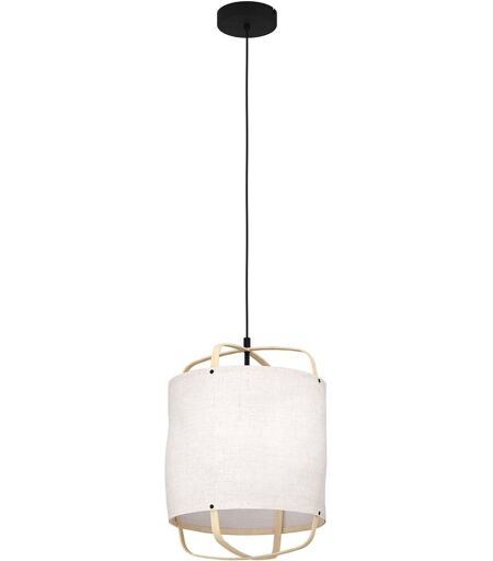 Eglo Suspension Luminaire Surfleet,Lustre Au Design Nature Pour Salon Et Salle À Manger,Plafonnier À Suspendre,Lampe De Plafond En Lin Beige,Bois Bambou Et Métal Noir,Douille E27