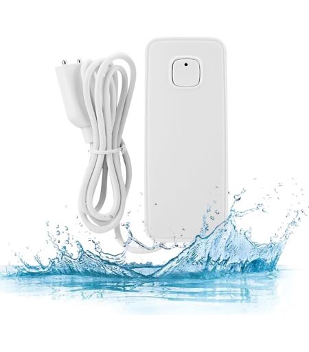 LARGE GAMME D'APPLICATIONS les al de fuite d'eau peuvent être utilisées dans les salles de bains, les sous-sols, les chauffe-eau, les lave-vaisselle, les réfrigérateurs, les machines à laver, etc., et peuvent également être utilisées pour surveiller les limites de niveau d'eau prédéfinies dans les piscines, les baignoires et d'autres scénarios. PERFORMANCES FIABLES si le capteur d'eau détecte une fuite d'eau ou si une limite prédéfinie est dépassée, le détecteur d'eau émet une alarme et envoie rapidement un mes d'alarme à un smartphone pour éviter d'éventuels dégâts d'eau. SURVEILLANCE À DISTANCE Le détecteur de fuite d'inondation fournit une surveillance à distance de la maison et vous pouvez vérifier l'état à tout moment via l'application. Définissez des notifications push sur votre appareil mobile ou des sons et des vibrations pour des alertes précoces de fuites dans votre maison. FACILE À UTIL R Détecteur de fuite d'eau Aucun fil, aucun outil requis, il suffit de retirer la feuille isolante et de la placer là où une fuite d'eau pourrait se produire pour la surveiller. Le capteur de fuite d'eau peut être placé de manière flexible et pratique. ALIMENTATION PAR BATTERIE Le capteur de niveau d'eau peut fonctionner avec une faible consommation d'énergie et peut rester en veille pendant 6 à 10 mois. Le capteur d'immersion dans l'eau est plug and play, il suffit de télécharger l'application ""Smart Life"" et de la connecter au capteur d'eau. ...