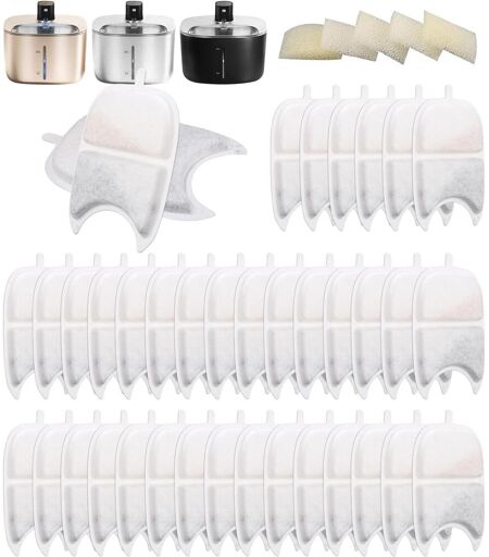 Filtre Fontaine Eau Chat,Pour Fontaine À Chat De 4l,Lot De 12 Filtres À Charbon Et 24 Éponges De Rechange,With Triple Filtration System With Resin And Activated Carbon