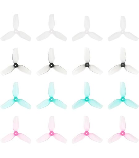 BETAFPV HQ 31mm Ultralight 3-Blade propellers feature high efficiency and are prec in operation for freestyle. HQ 31mm Ultralight 3-blade propellers with 1.0mm shaft compatible with 0702 0802SE series brushless motor for freestyle flying. Weighs only 0.67g/set. It is compatible with the Air65 freestyle version brushless drone, meteor65 and meteor65 Pro series drone which is super easy to swap and upgrade build. BETAFPV HQ 31mm Ultralight 3-Blade propellers made of high-quality polycarbonate material with the high efficiency and durability. You will receive 16pcs HQ 31mm Ultralight 3-Blade propellers(8CW+8CCW) in 4 different colors, including transparent, gray, cyan and pink. ...